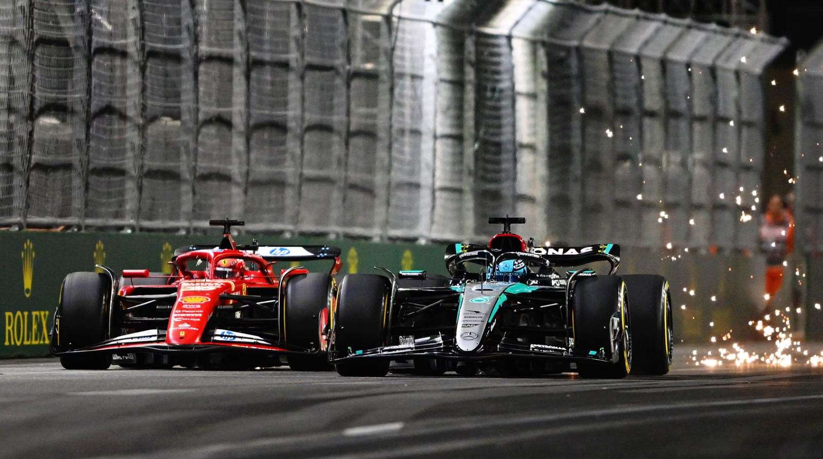 بفضل تخطيط ذكي داخل الحلبة ، حصل فريق مرسيدس على ميداليتين في هذا السباق. جورج راسل أظهر ثباتًا كبيرًا رغم مشكلة في المقود خلال الفترة الأولى، وتمكن من إنهاء السباق ثالثًا، قبل أن يُمنح المركز الثاني بعد استبعاد نوريس.