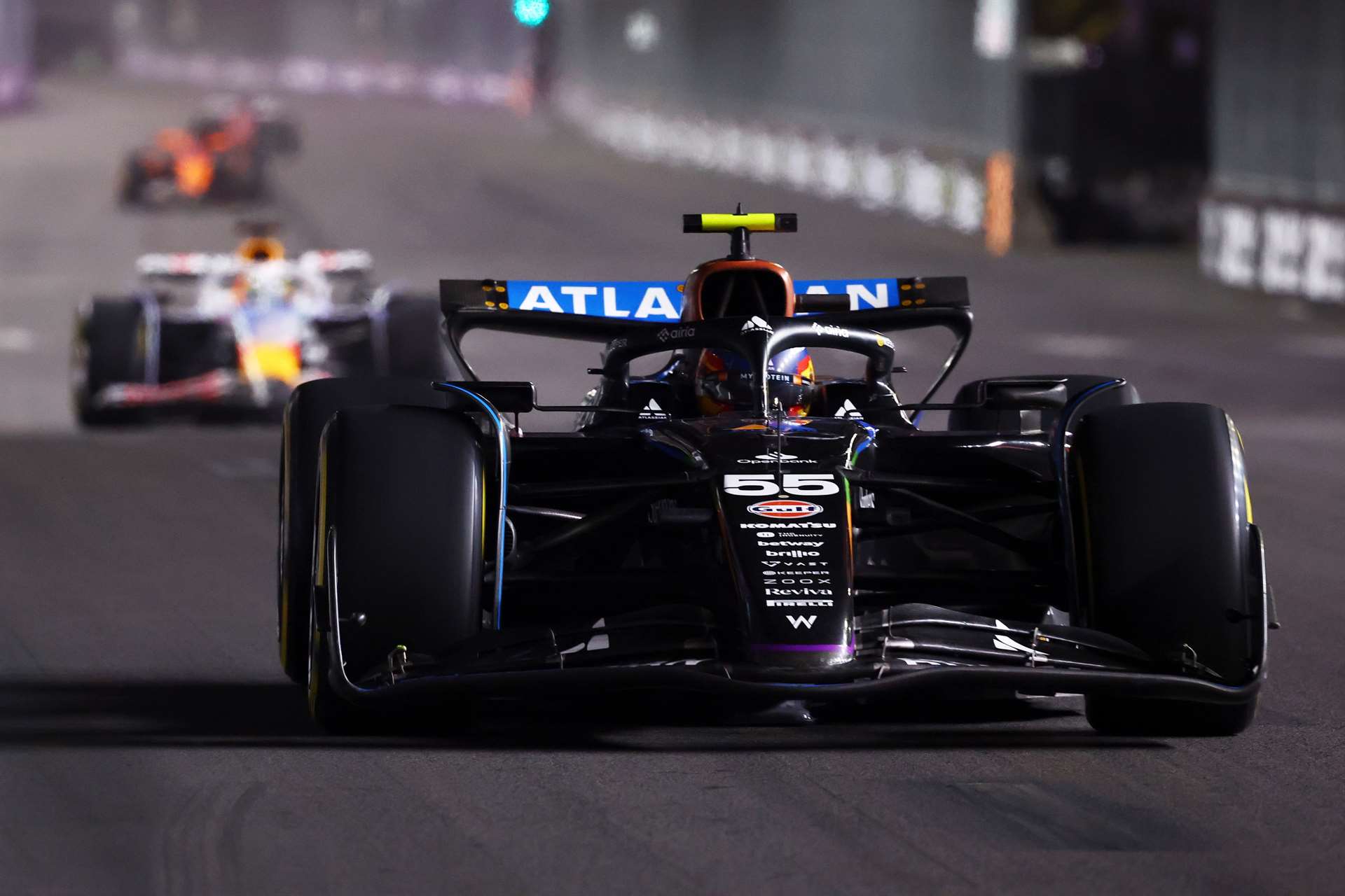 بعد أن سجل نقاطًا في البرازيل، جاء فريق ألبين إلى لاس فيجاس متحمسًا. بيير جاسلي دخل إلى الربع الأخير من التصفيات، لكن اصطدامًا جماعيًا في بداية السباق دمر سيارته جزئيًا. ورغم استمراره، إلا أن الضرر كان واضحاً في أدائه.