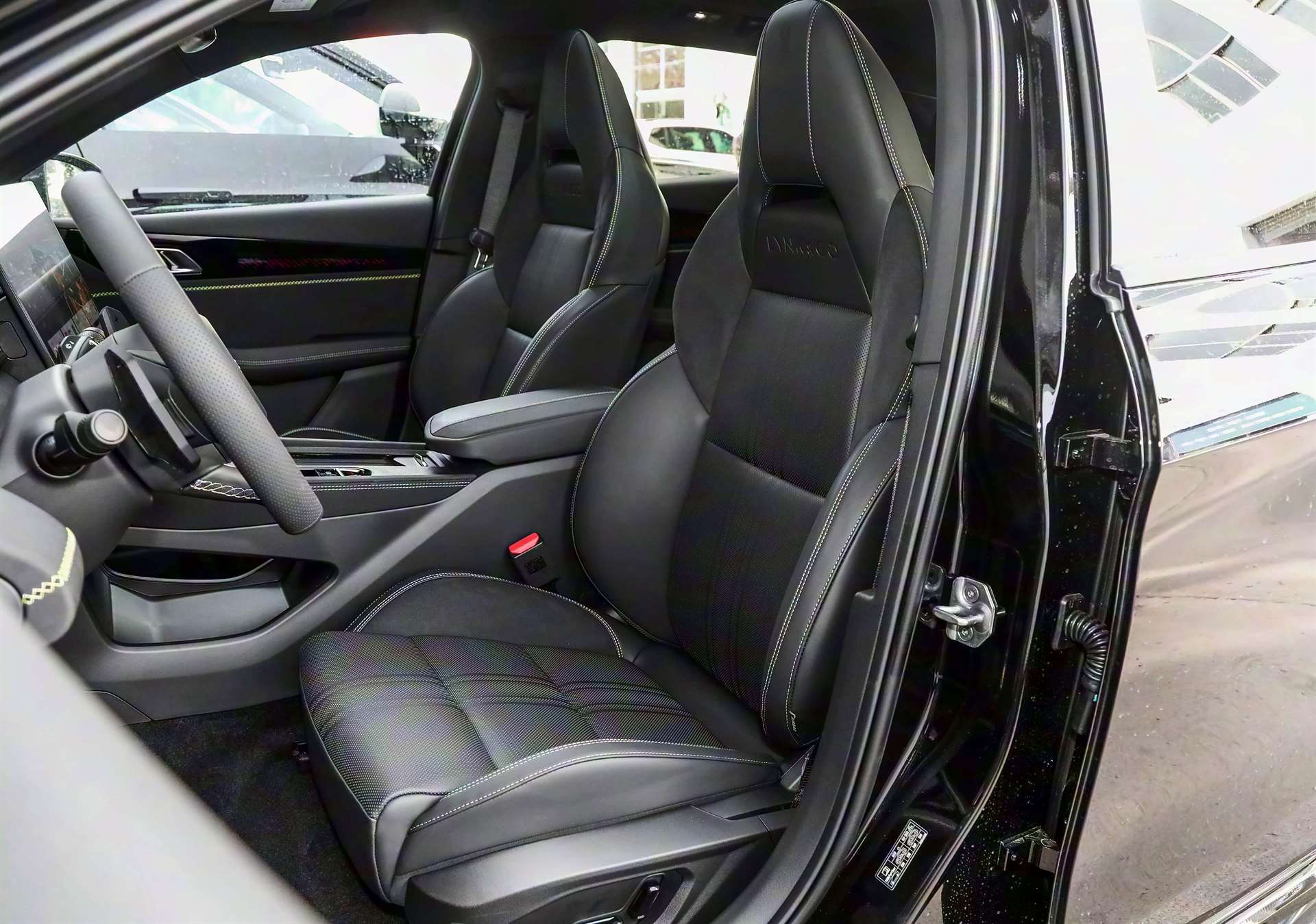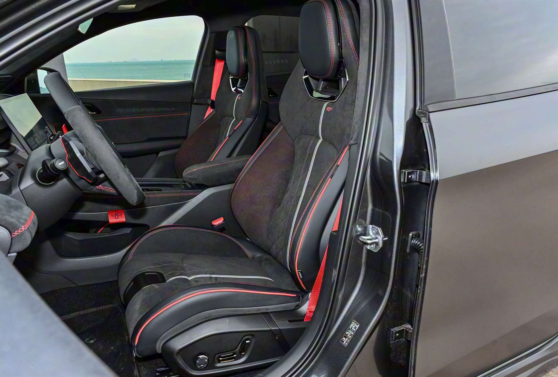 - مقاعد رياضية مثبّتة مستوحاة من سيارات السباق، مغطاة بمادة ألكانتارا الفاخرة.