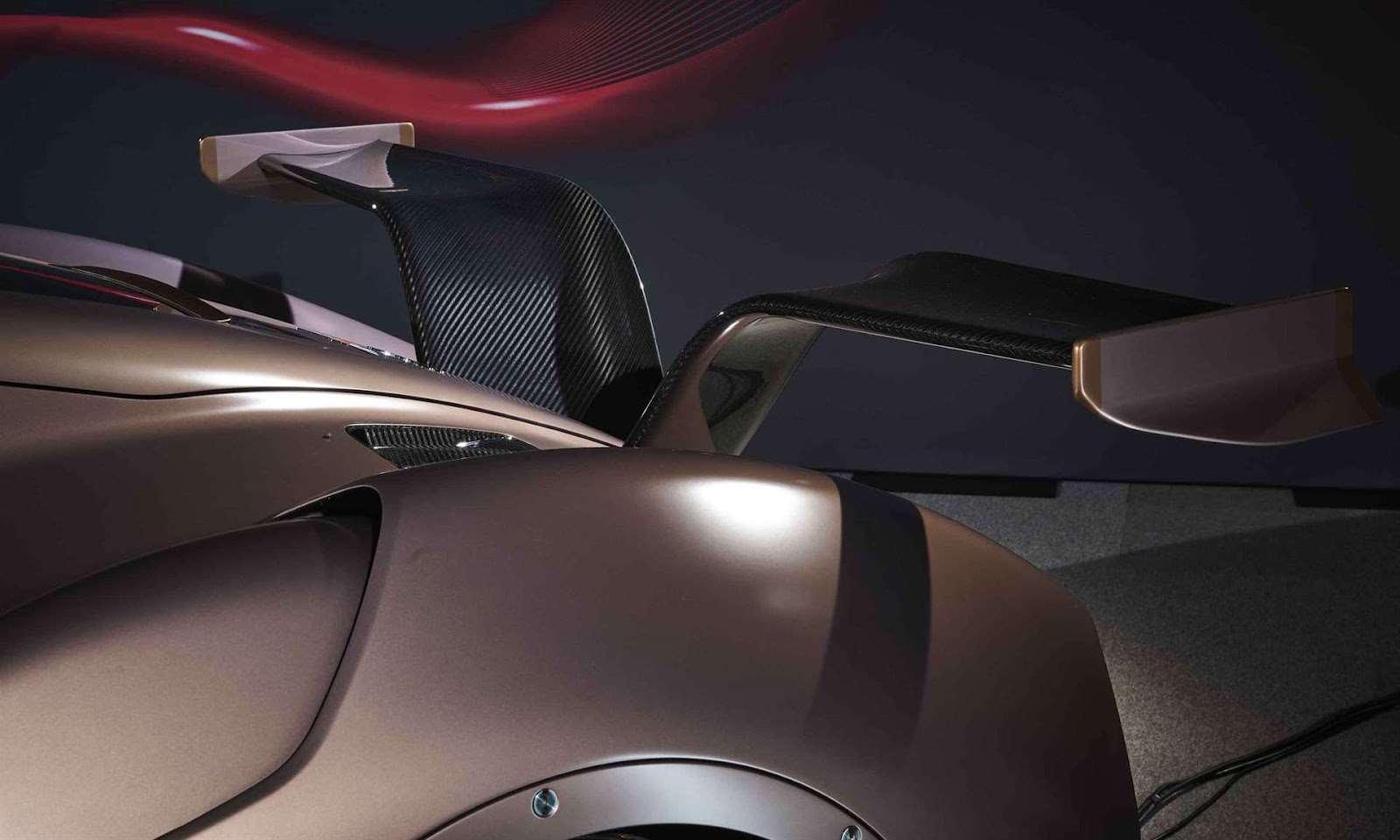- جناح خلفي مزدوج: مستوحى من أجنحة طائر اللقلق، لإنتاج قوة ضغط سفلية فعّالة عند السرعات العالية.
