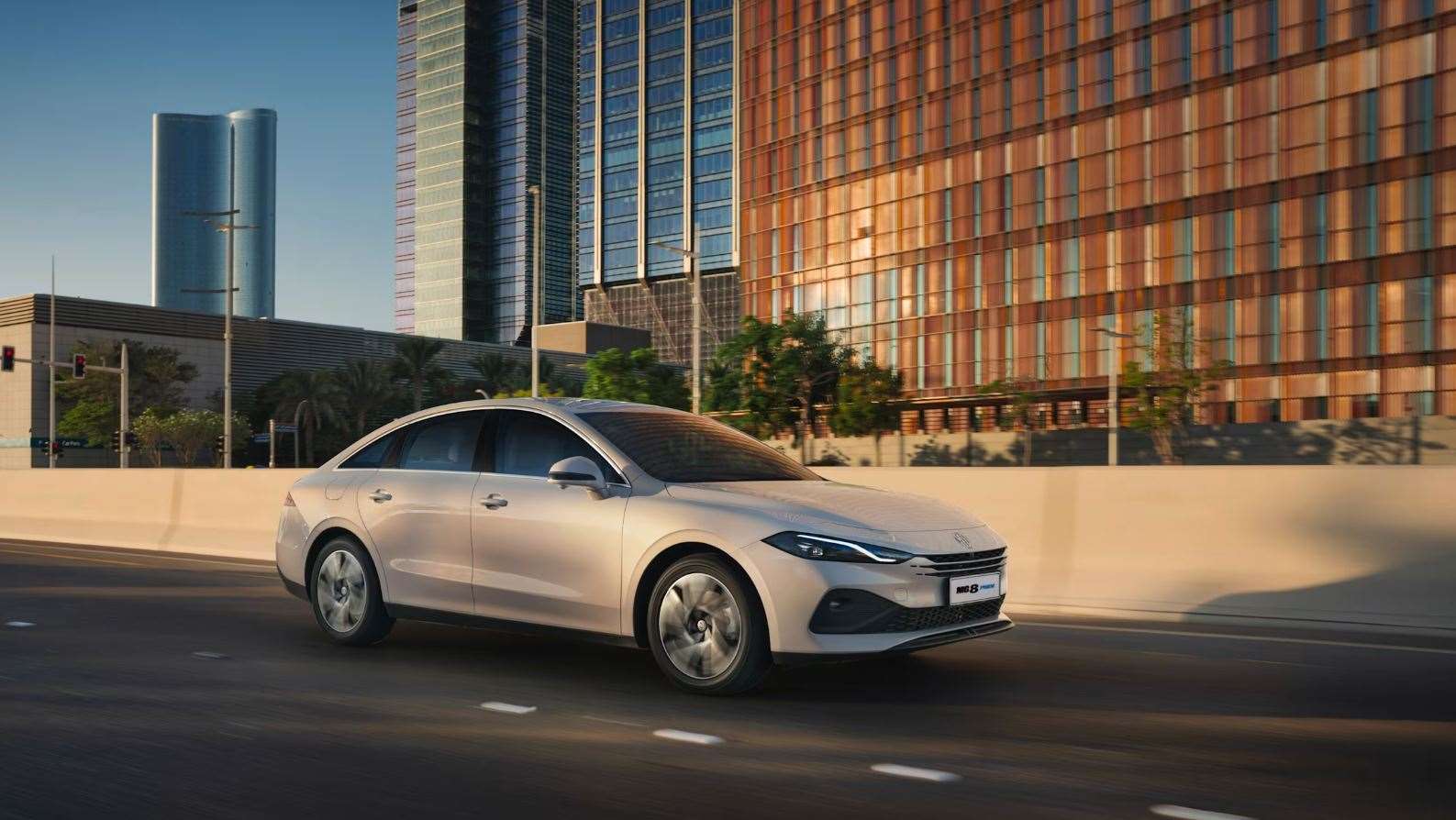 من النظرة الأولى، يتضح أن إم جي 8 PHEV تجمع بين الرقي و الحداثة. تبدو السيارة أنيقة و بحضور قوي على الطرقات بفضل التالي: