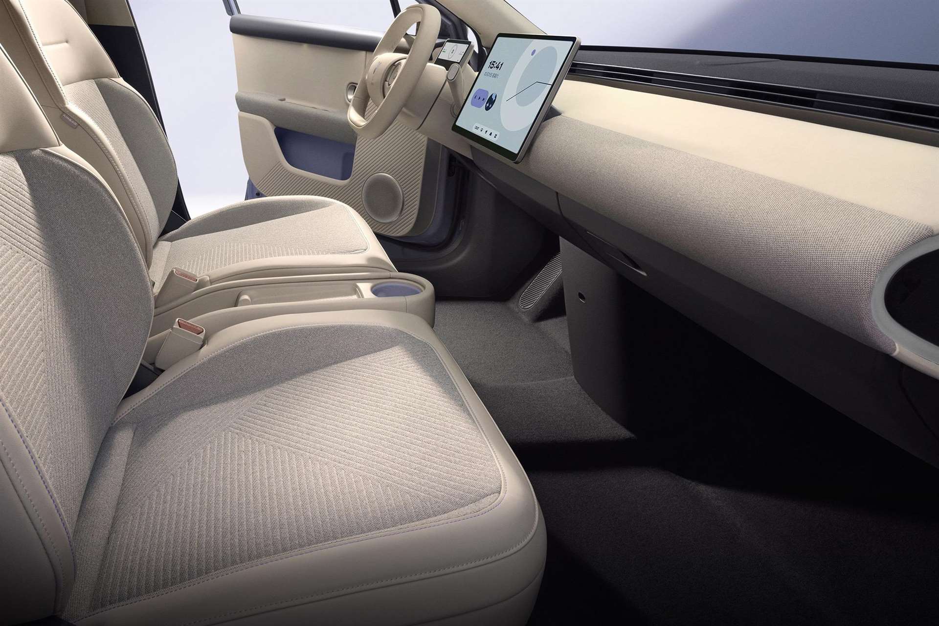 - مقاعد وألواح الأبواب من البوليستر المعاد تدويره بنسبة 100%، مع وجود مقاعد أمامية مزودة بنظام تدفئة كمعيار أساسي.