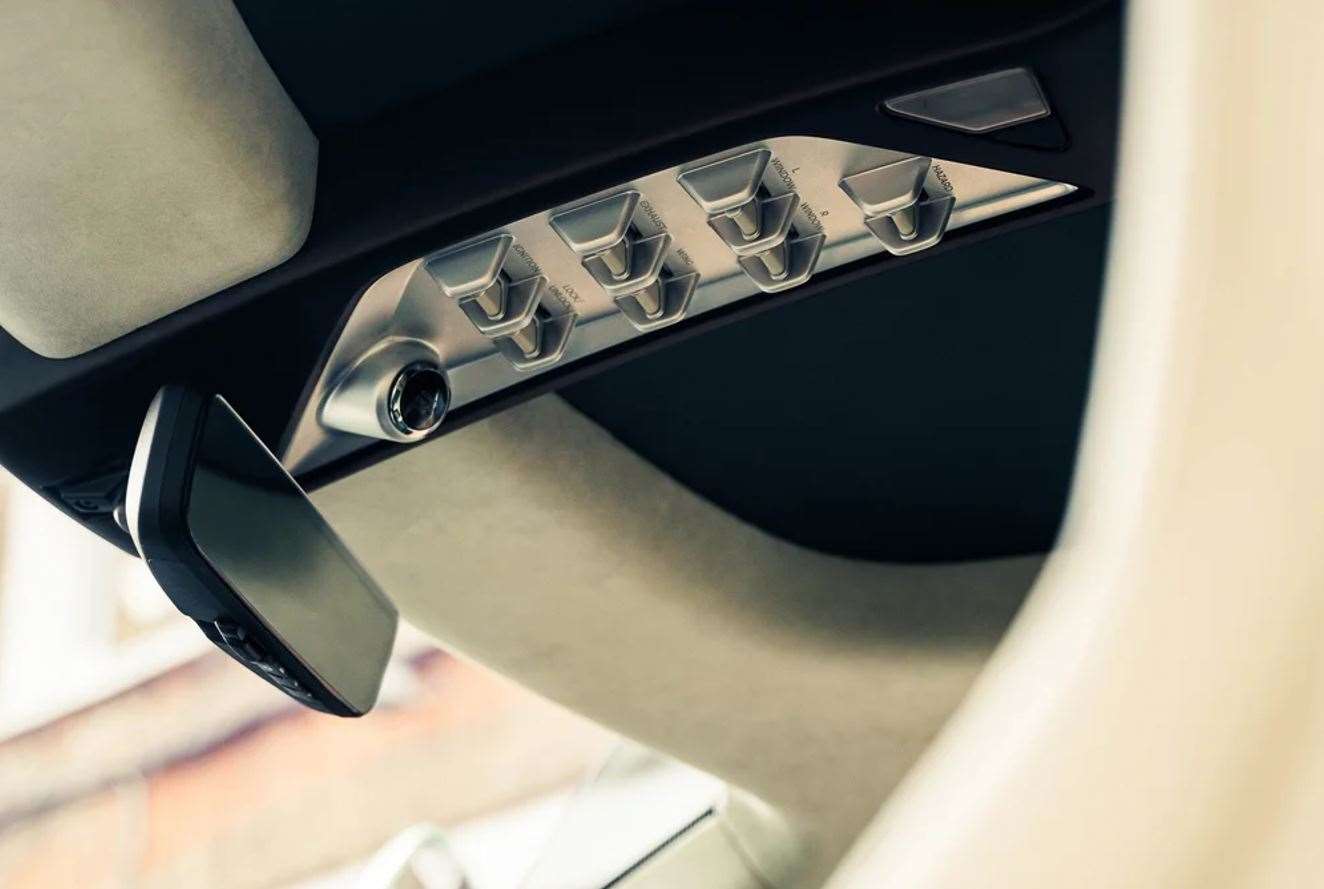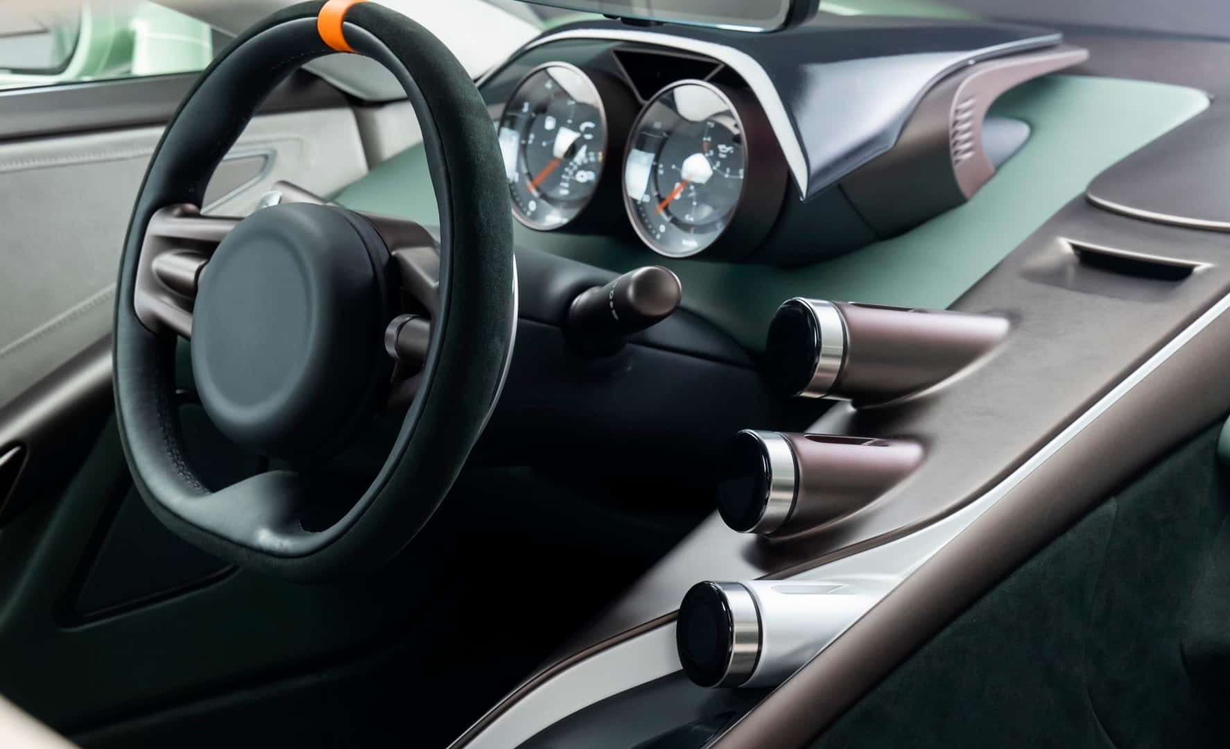 قد تتوقع مقصورة صارخة كالسيارات المخصصة للسينما، لكن المفاجأة أن الداخلية أصبحت أكثر أناقة و”مدنية”. لديك ثلاث شاشات دائرية على الكونسول الوسطي تشبه إلى حدّ كبير ما نراه في سيارات مثل بوجاتي توربيون.